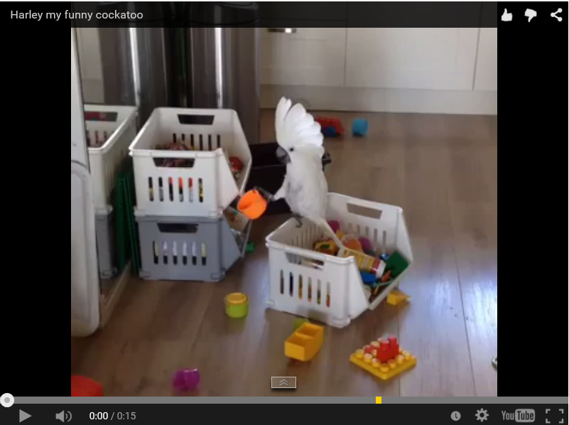 Cockatoo Yells Into a Cup Posted on May 24, 2015 by Bear The acoustics in here are great! I sound fabulous! A very silly cockatoo named Harley yells into an orange plastic cup for no apparent reason except to hear the sound of her own voice echoing throughout the room. Related Comments