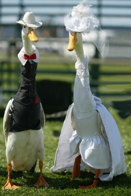 Brian Harrington is an Australian farmer that has been dressing up his ducks in elaborate garb for the past 30 years. Brian works with an actual dressmaker to fit the ducks with their own stylish looks. [via distractify]
